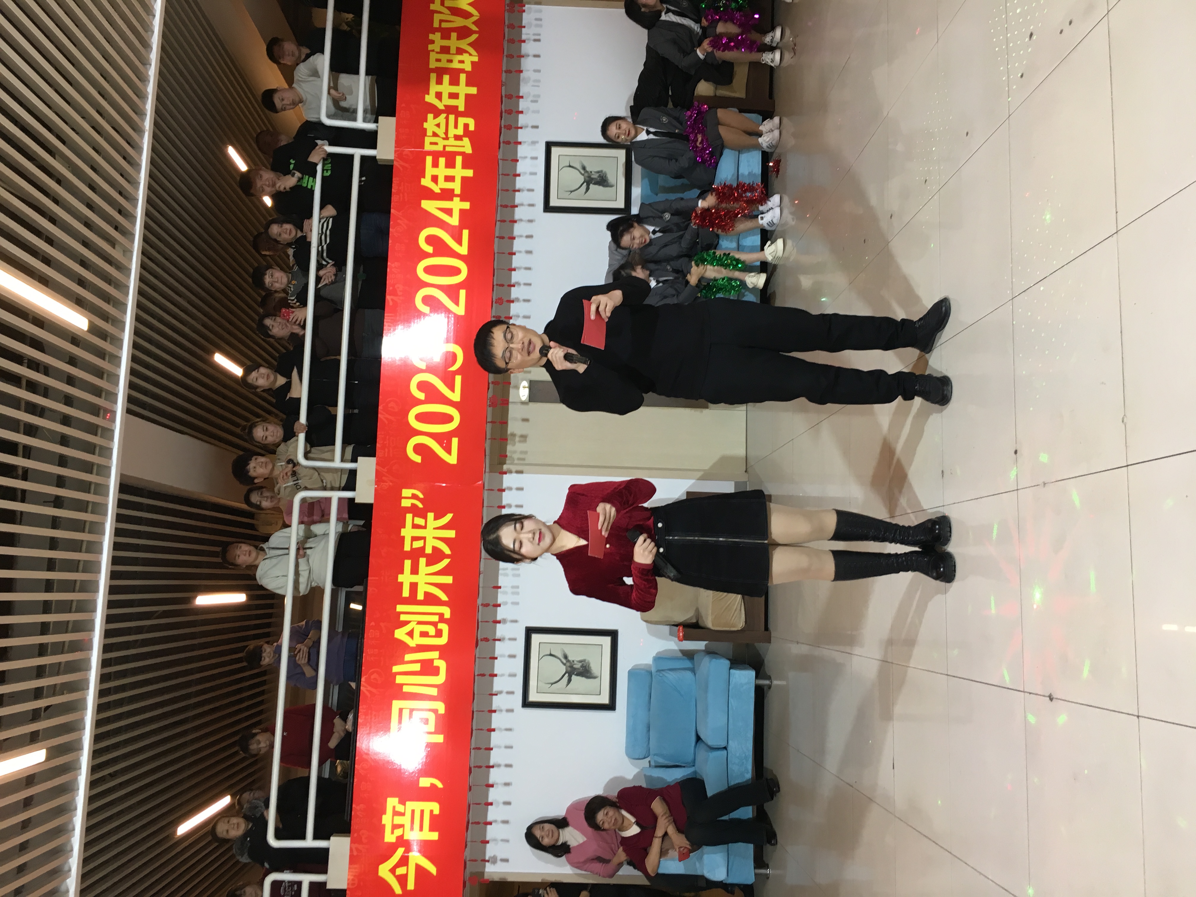 跨年鐘聲敲響后,公司總裁發(fā)表了熱情洋溢的講話,并祝愿集團各項事業(yè)蒸蒸日上,商業(yè)城的明天更加美好!晚會在一首“難忘今宵”歌曲中結(jié)束。大家?guī)е谂魏妥8?,迎來了嶄新?024年。